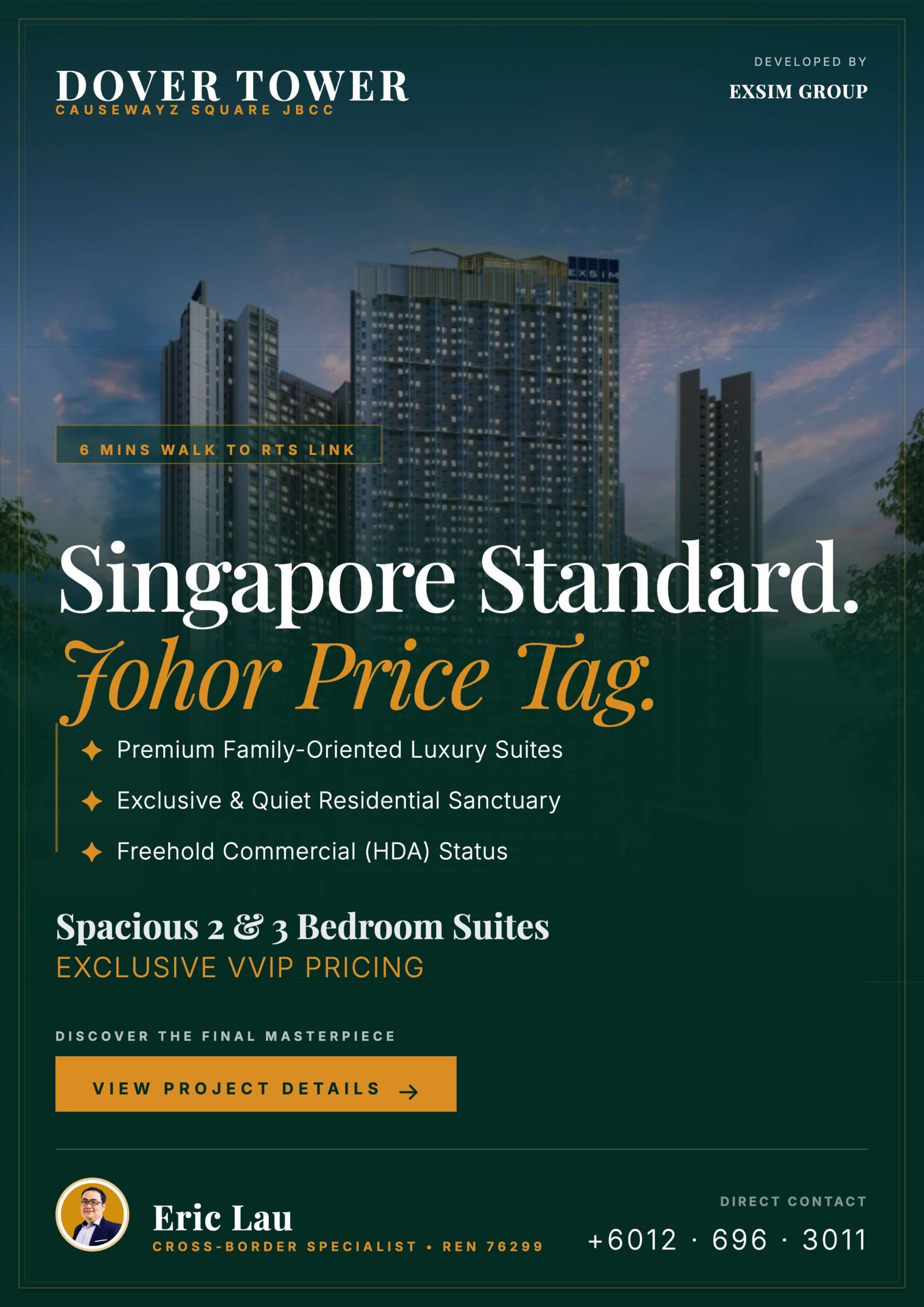JUST 650m to JB CIQ via a covered pedestrian link bridge