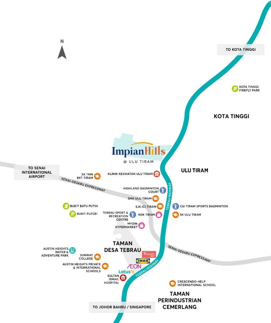 - Education: Nearby SJK (C) Tiram, SMK Ulu Tiram, Sunway College, and International Schools.