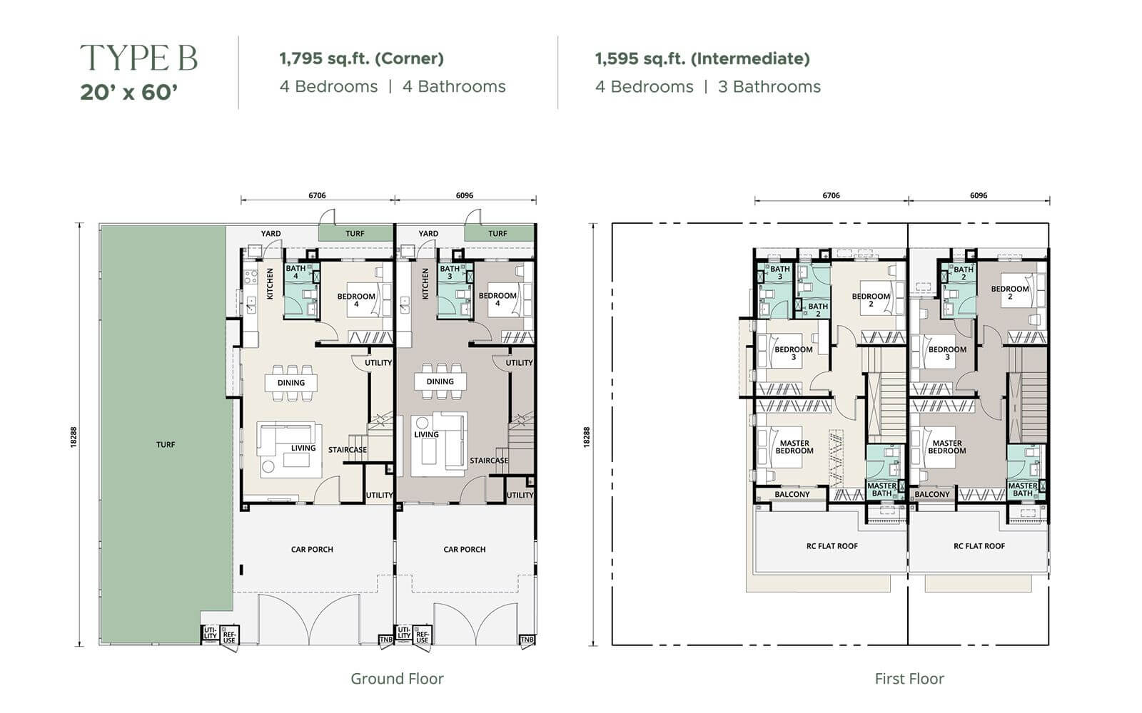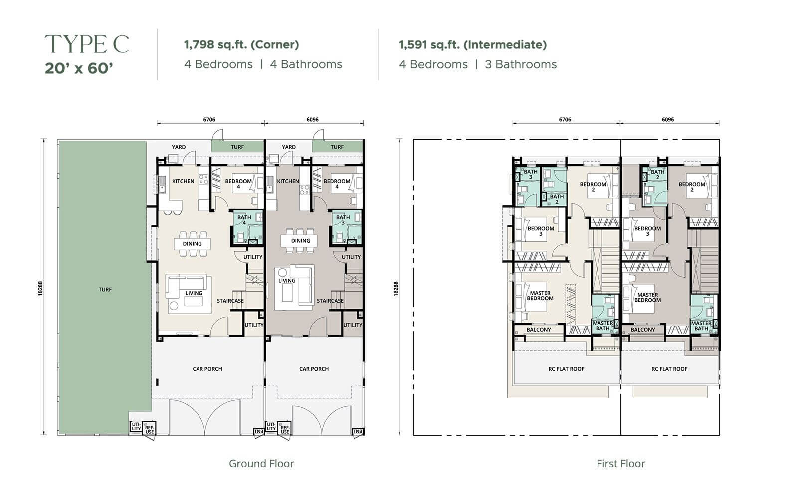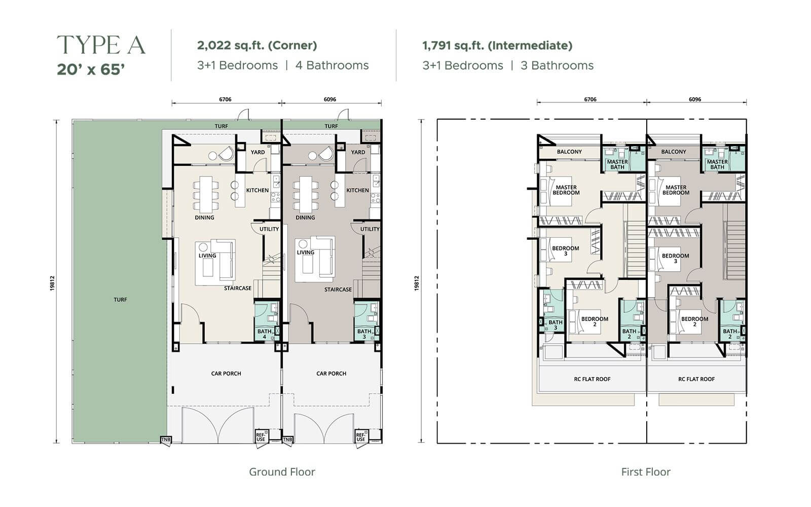 - Land Size: 20′ x 60′ / 22′ x 60′