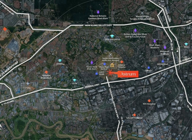 Living at Astrum Shah Alam means being close to some of Selangor's most prominent institutions and landmarks, ensuring convenience and a well-rounded lifestyle.