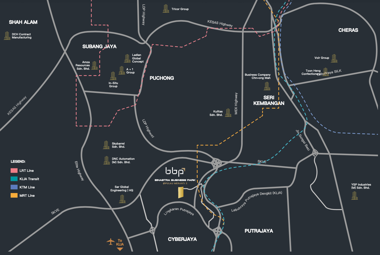 Binastra Business Park @ Pulau Meranti II, located in Puchong South, is a modern, high-specification industrial development strategically positioned for businesses requiring large built-ups, heavy-duty floor loading, wide road access, and corporate-grade façade.