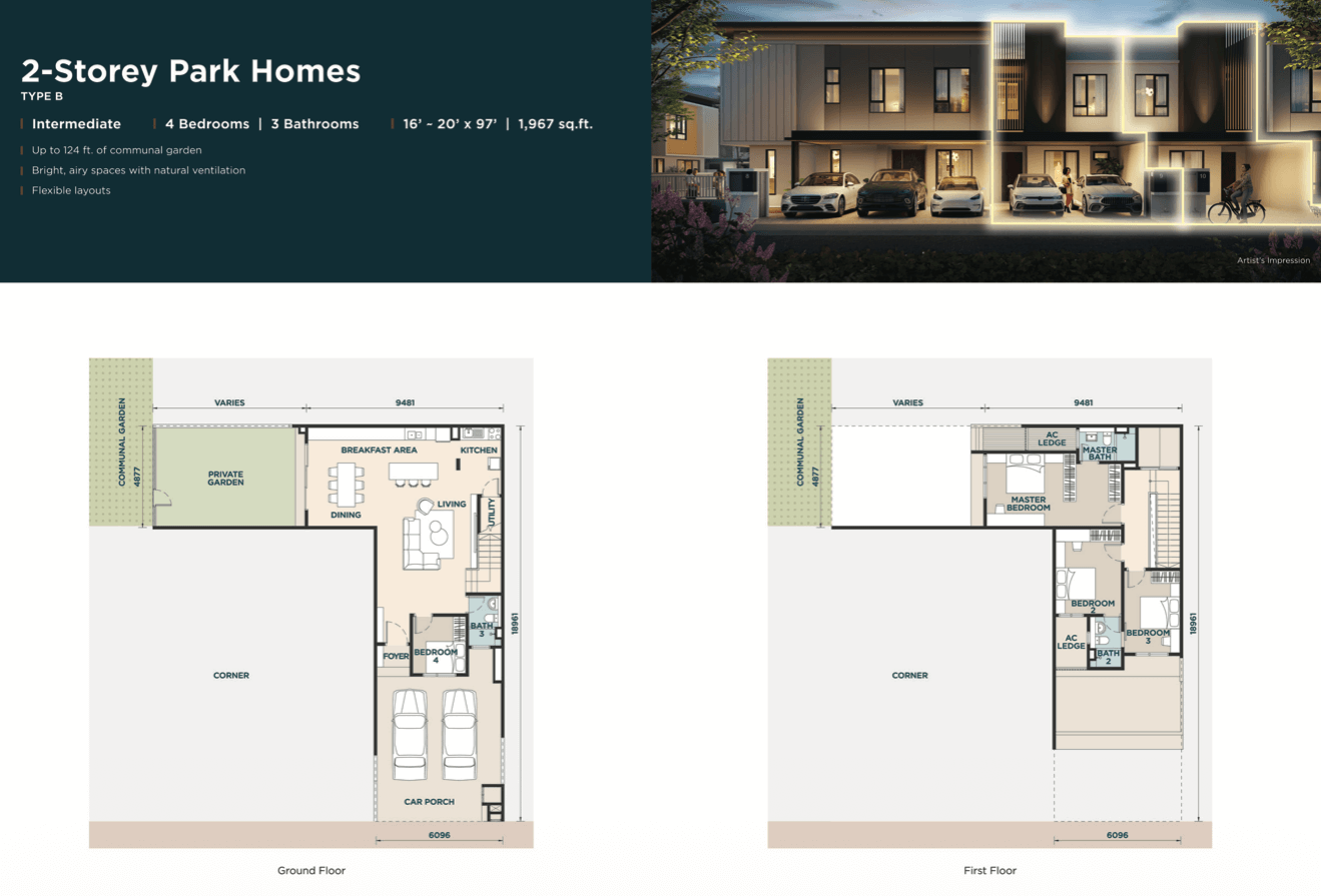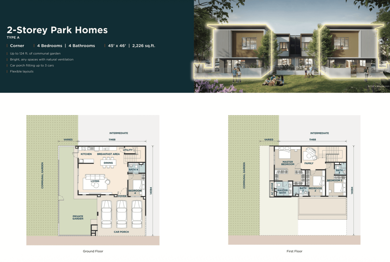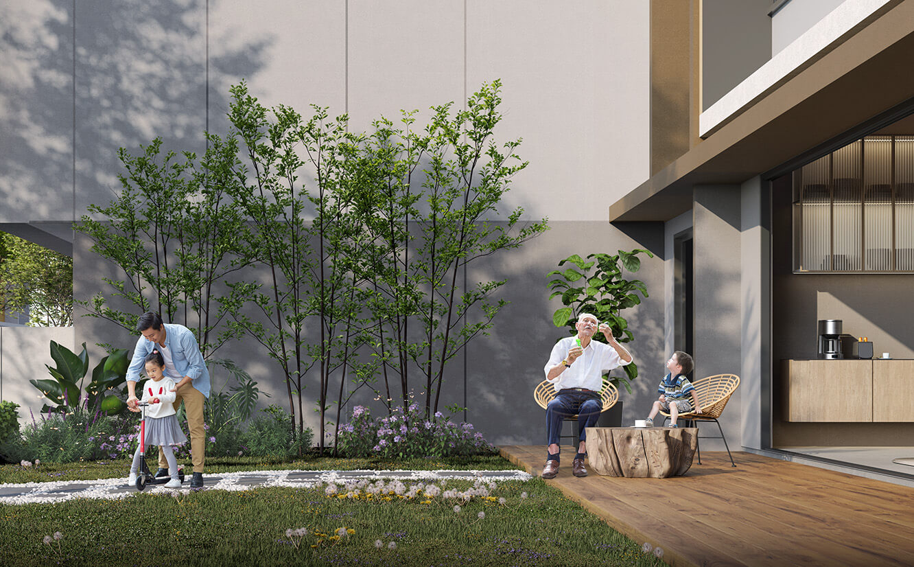 Designed for compact landed living with garden spaces and park adjacency.