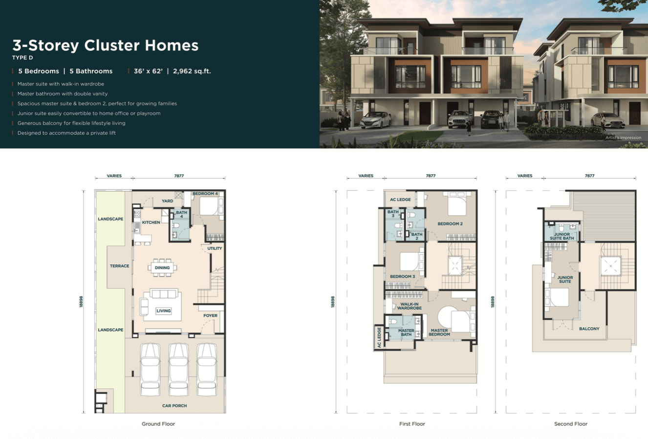 - Type D: 2,962 sqft