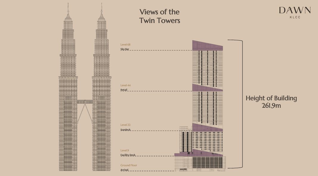 Dawn KLCC derives its name from the first light of day, symbolizing renewal, ambition, and inspiration. It represents a bold new chapter for investors and residents alike, offering a world-class living experience in a prime location.