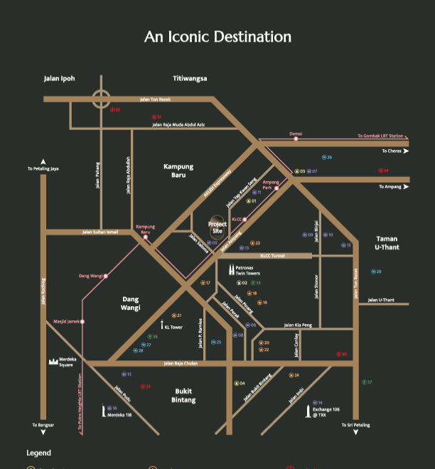 Situated in Jalan Ampang, Dawn KLCC offers unparalleled access to Kuala Lumpur's most sought-after destinations. The project is strategically positioned near: