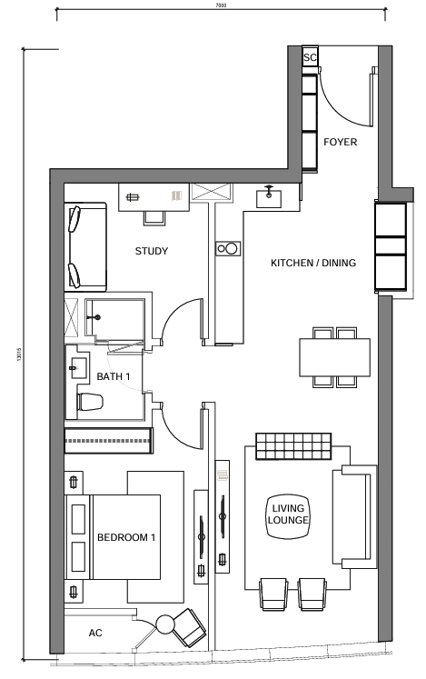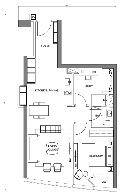 LUXE PACKAGE — 1BR + 1 STUDY / WALK-IN CLOSET