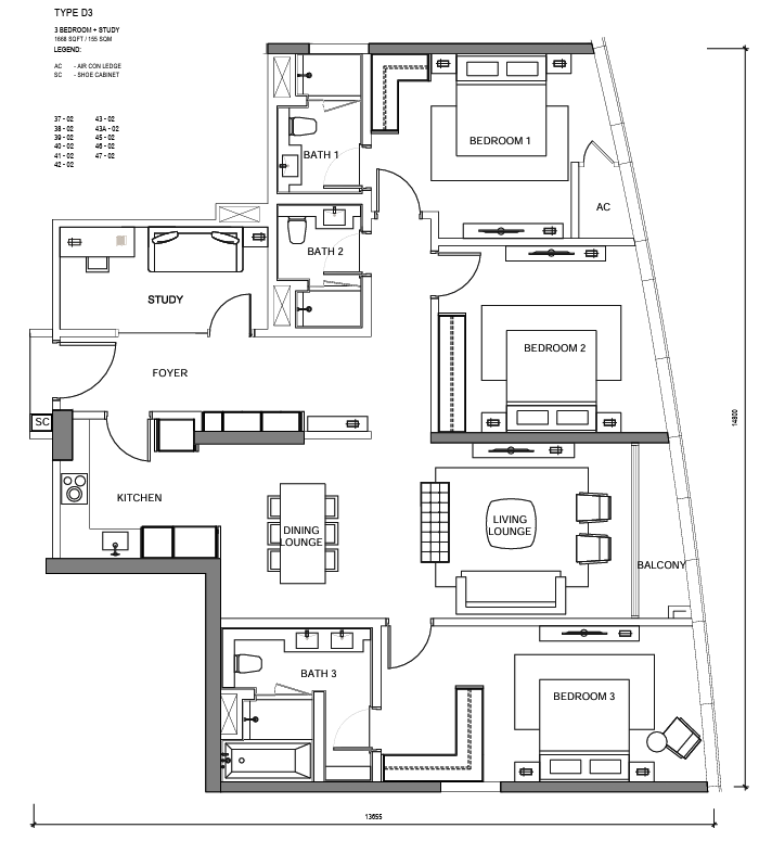 LUXE PACKAGE — 3BR + 1BR / STUDY
