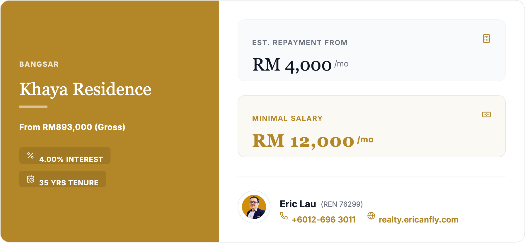 Eric Lau, Real Estate Negotiator (REN 76299) +6012-696 3011