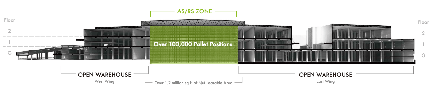 - Integrated AS/RS Zone with >100,000 pallet positions