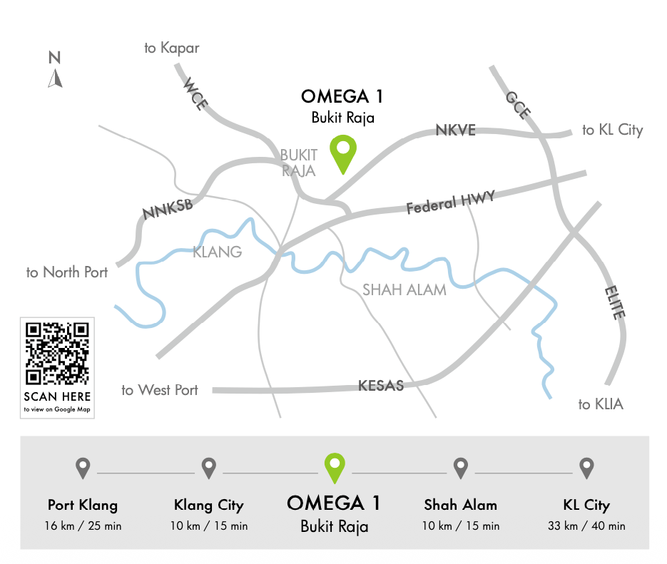 OMEGA 1 Bukit Raja is positioned in Klang Valley’s most strategic logistics corridor with direct access to all major highways: