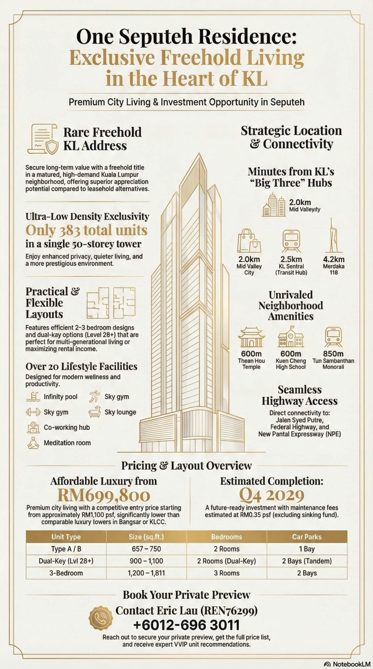 Discover One Seputeh — prime address, modern living, investment-ready.