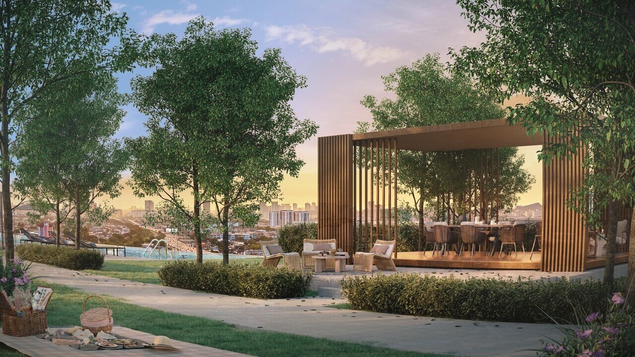 Multiple sky-level and podium facilities including pools, sports zones, co-working spaces, and wellness elements, supporting balanced urban living.