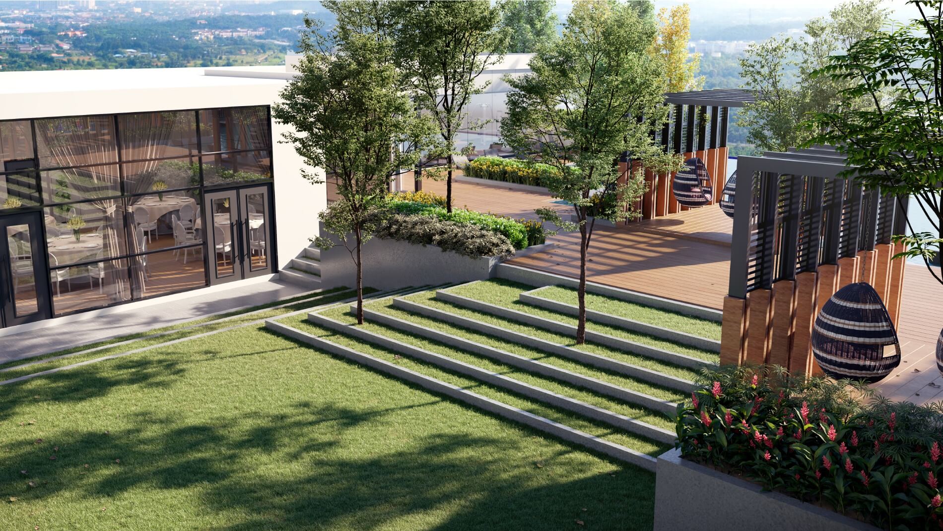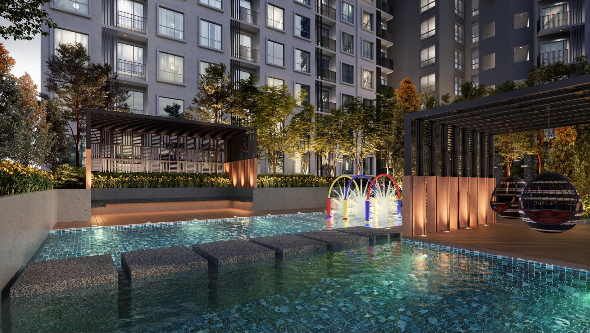 Sky infinity pool, gym, yoga deck, BBQ terrace, children’s playground, garden pavilion, and more.