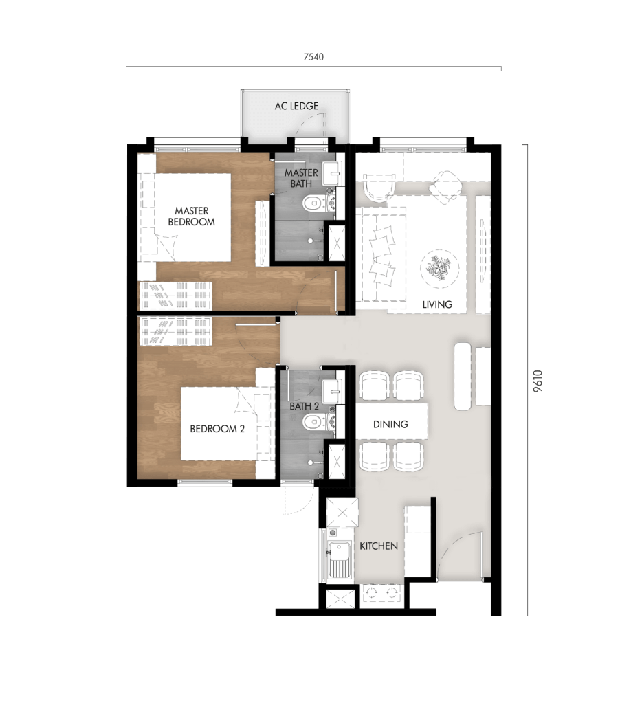 | Unit Types & Sizes | Type A: 550 sq.ft. (1 Bedroom) Type B: 666 sq.ft. (2 Bedrooms) Type C: 862 sq.ft. (3 Bedrooms) Type D: 909 sq.ft. (Dual Key) |